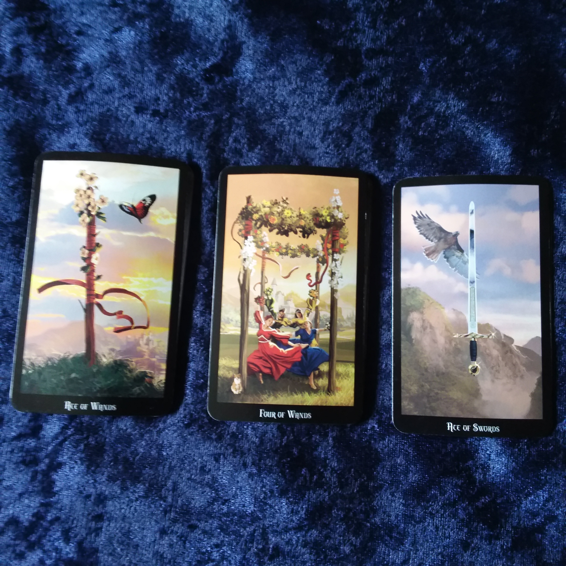 The Ace of Swords is associated with air. This feels a little more cautioning than reassuring / advising like the 4 of wands was. Swords and air have to do with intellect. Don’t overthink during this upcoming season, now through the end of the year in any case. This also would go along with the literal grounding / clearing house thing, as being needed to balance the airy creative energy.