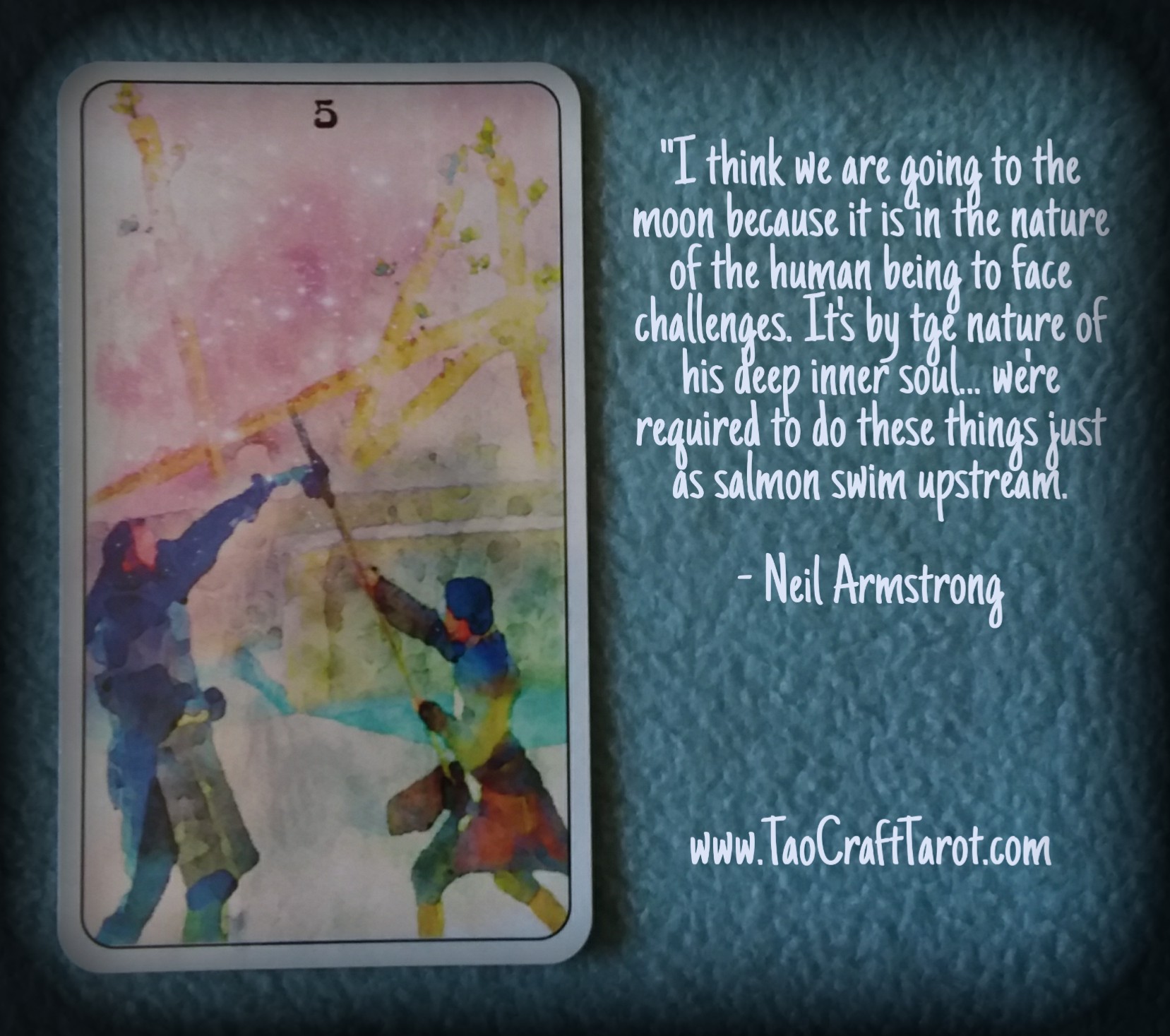 The Seven of Wands specifically is associated with effort, challenge, sometimes conflict. When you combine that with the wands’ suit meaning of your relationship with yourself (the element of fire, inner passions, philosophy, spirituality, etc.) It brings mental challenge to mind.