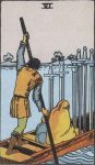 The deck resource books from Edward Waite talks about travel on water. Ellen Dugan talks about “smooth sailing ahead.” Diane Morgan talks about “yielding.” I’ve written here about perspective. All of these things, although different, are perfectly valid in the time and the background energy context of the time that the card interpretation was done. The human brain is a brilliant information filter and triage device. Attention is a real and very valuable psychic tool. Pay attention to something when it captures your attention. This is precisely how the artwork expands our Tarot understanding so dramatically. In the previous six of swords post, perspective and point of view stepped forward as a message after drawing attention to the swords stuck in the canoe. Today, my attention is much more strongly drawn to the image of the water, which in turn connects to the idea of flow, going with the flow, and the “yielding” that others have seen.