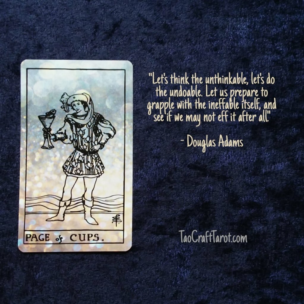 Page of Cups: find wisdom and inspiration in the absurd. Laugh your way into a better frame of mind.