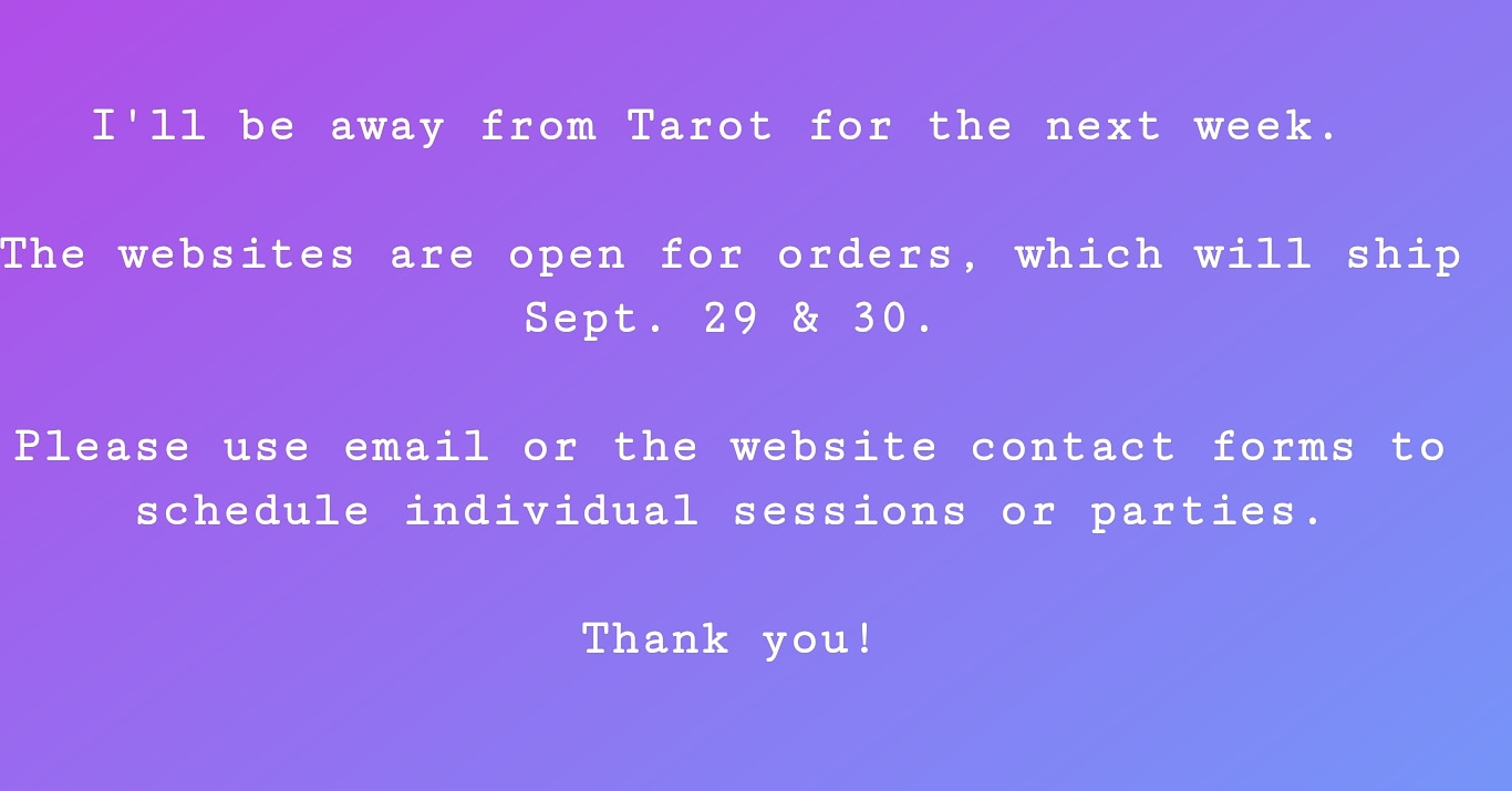When I go to in-person readings, I often carry two decks and let the client choose while they are still in the bag. For parties,which I very seldom do any more, I’ll choose whichever deck I’m feeling for the night in order to meet the demands of party style readings.