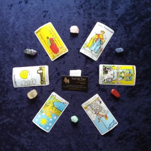Email tarot includes a photo of your unique cards (I shuffle, draw the cards and take a picture just as if we were in the same place together). You can then read the card interpretation. With video distance by email, the link to the video comes by email (the file is too big to attach to email directly) you see the card draw and listen to the interpretation. Both include the “psychic summary” with crystal and aromatherapy suggestions. Both email and video distance readings are available on the home page using secure PayPal buttons to purchase. For fastest service, please send your name, and topic/question/open reading request by email or by using the “contact merchant” button at checkout.